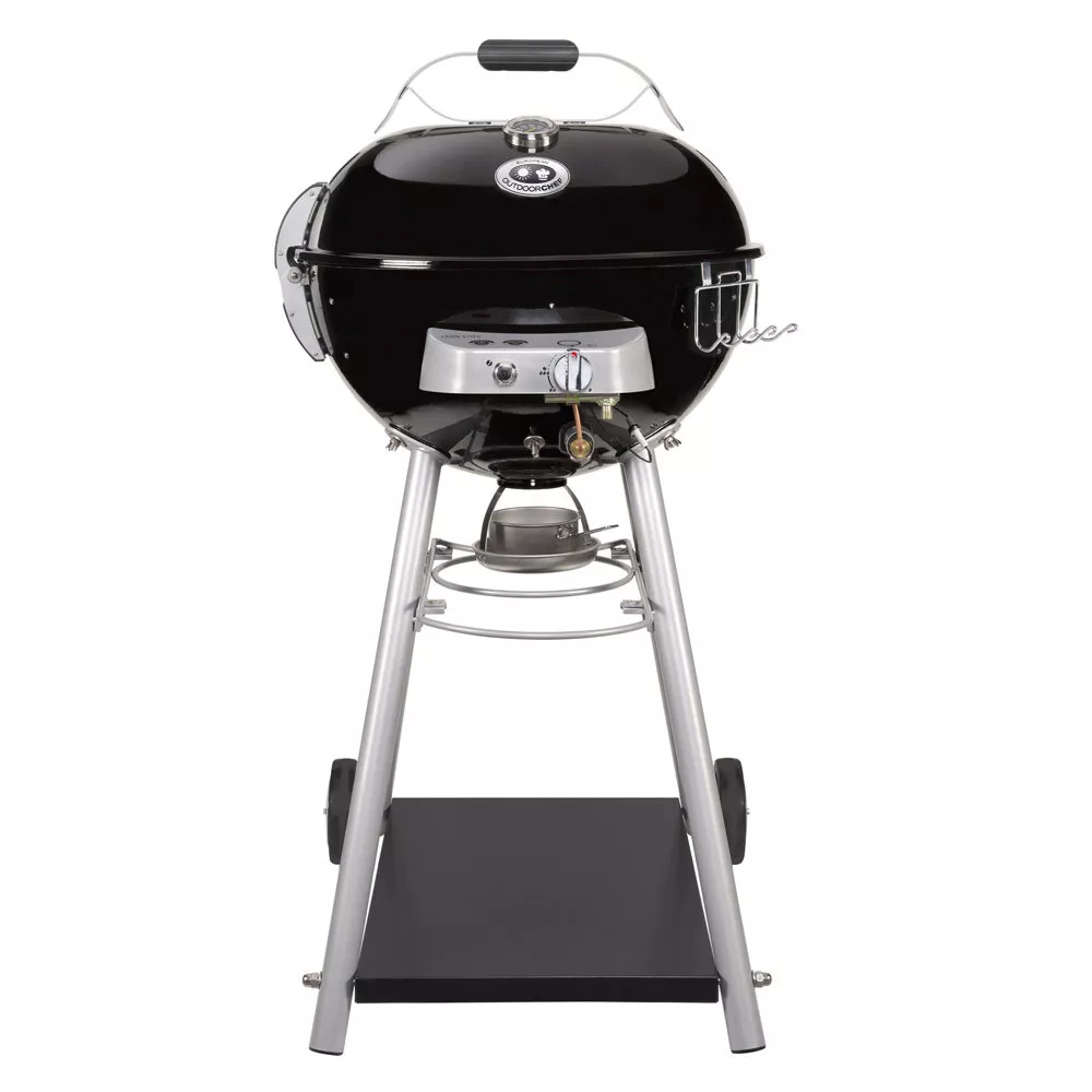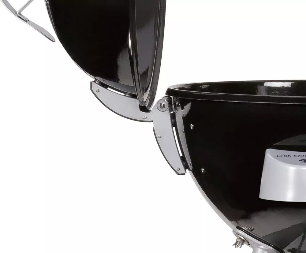 Barbecue a gas Leon 570 G con corpo e griglia in acciaio smaltato porcellanato di colore nero e termometro integrato sul coperchio della cappa per una migliore regolazione del calore; il sistema ad un bruciatore smaltato porcellanato da 8,5 kW/h con accensione piezoelettrica integrata permette a questo BBQ compatto ma molto solido di cuocere al meglio le vostre pietanze preferite.