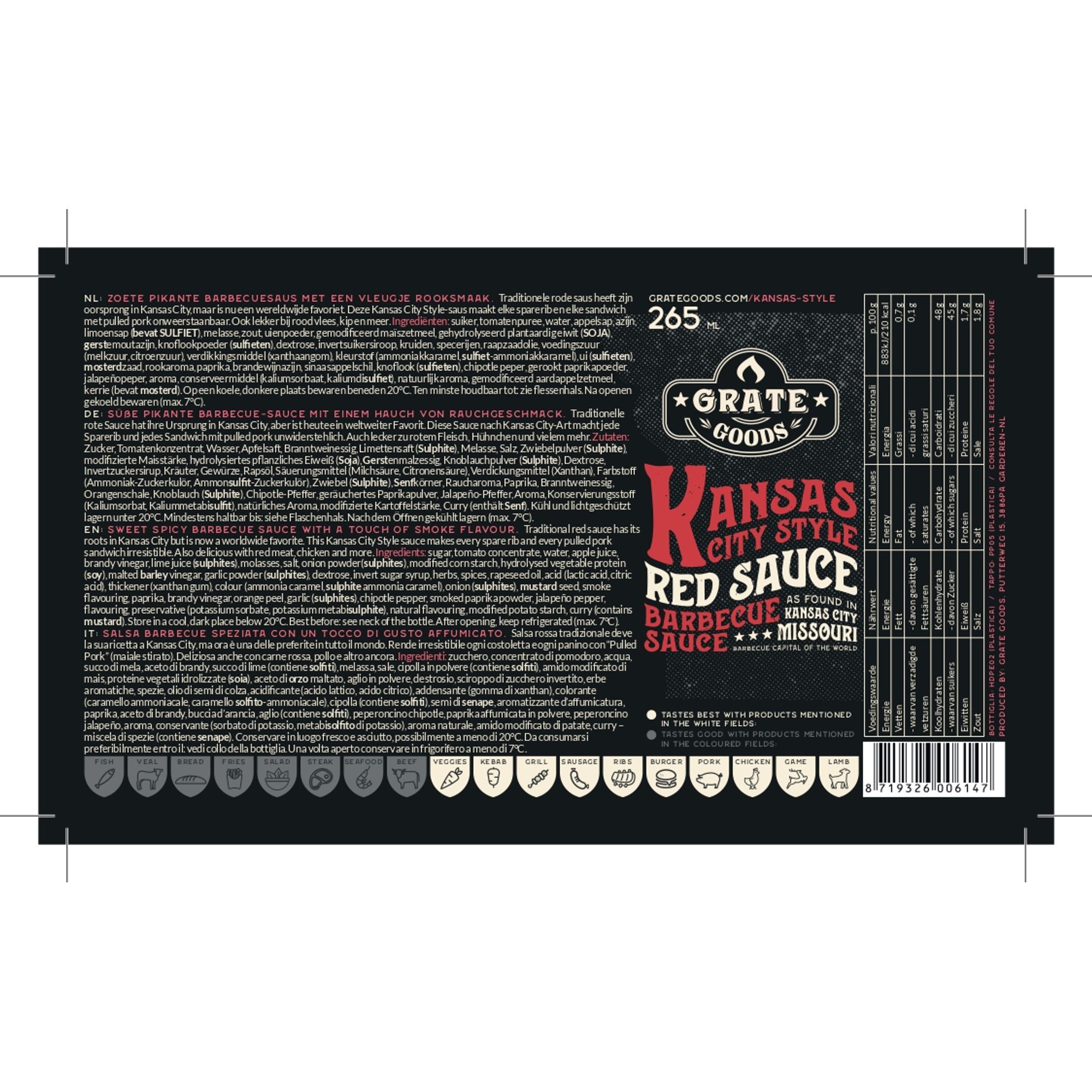 Nella capitale del barbecue in America, ne puoi trovare uno praticamente ad ogni angolo: Kansas City profuma di barbecue! Le salse BBQ che provengono da questa città sono fatte tradizionalmente con pomodori e zucchero di canna. Noi abbiamo aggiunto la miglior miscela di succo di mela, peperoncino jalapeno, paprika affumicata e anice stellato. Aggiungi questa salsa al pulled pork, alle costine o alla carne rossa e crea la tua esplosione di sapori! La salsa “Kansas City Red Barbecue Sauce” è disponibile in due in confezione da 265ml o da 775ml.