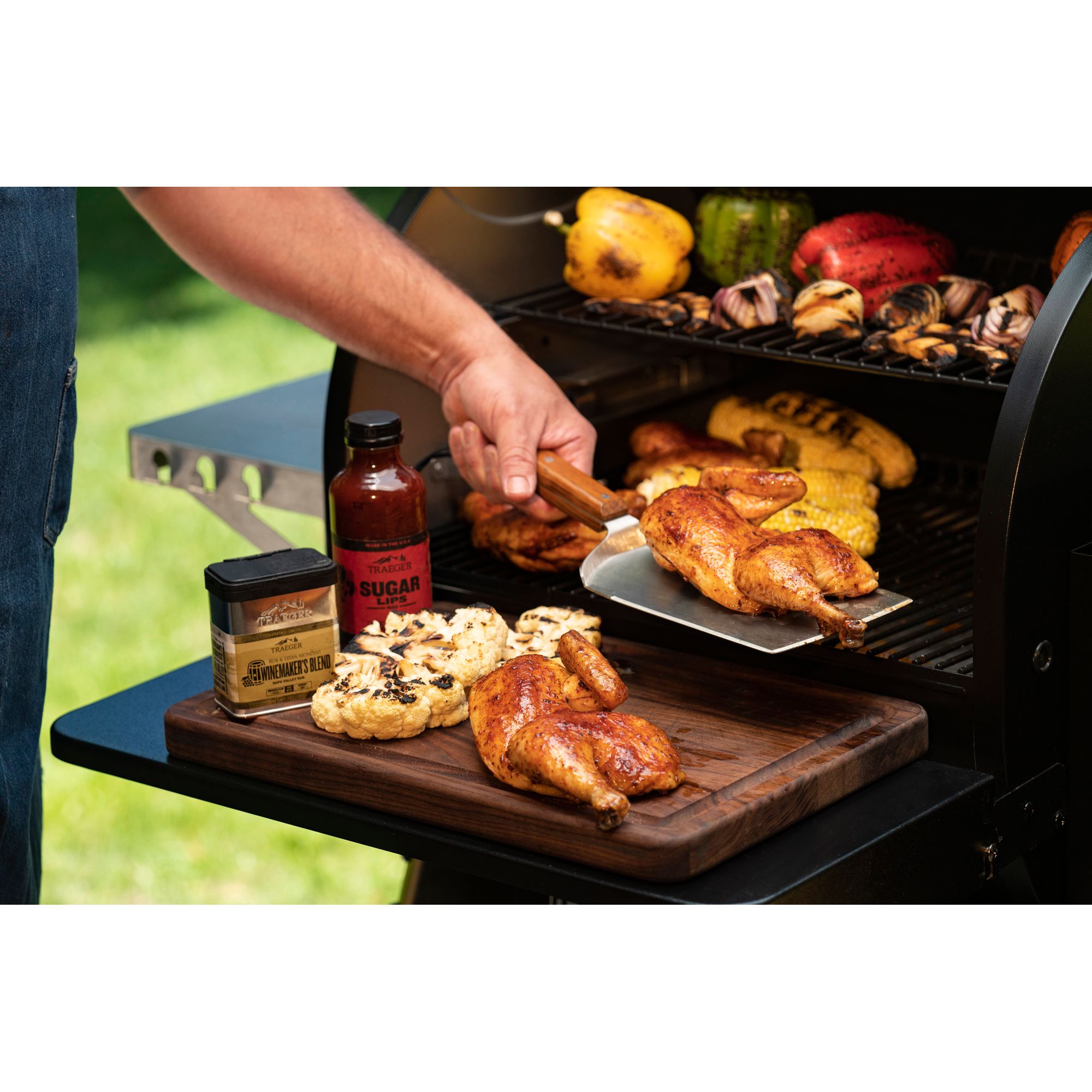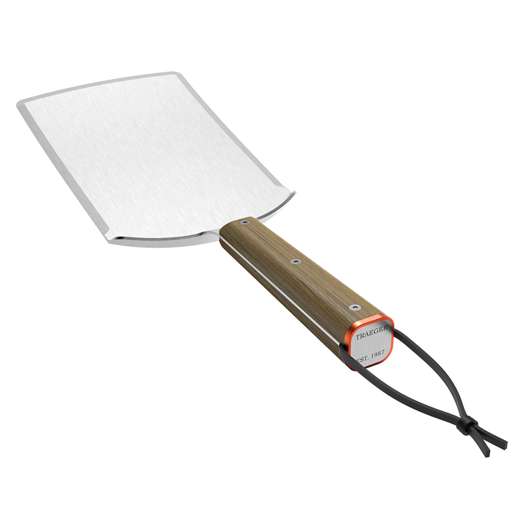 La spatola XXL in acciaio inossidabile Traeger è ideale per grigliare: resistente al calore e con una comoda impugnatura ergonomica in legno, è facile da utilizzare e l’accessorio perfetto per cucinare al BBQ qualunque pietanza. Le sue dimensioni extra large e i bordi smussati sono studiati per agevolare lo spostamento e per girare con facilità i tagli più grandi di carne e di pesce. Il gancio in metallo permette di appendere la spatola per griglia XXL Traeger al proprio barbecue.