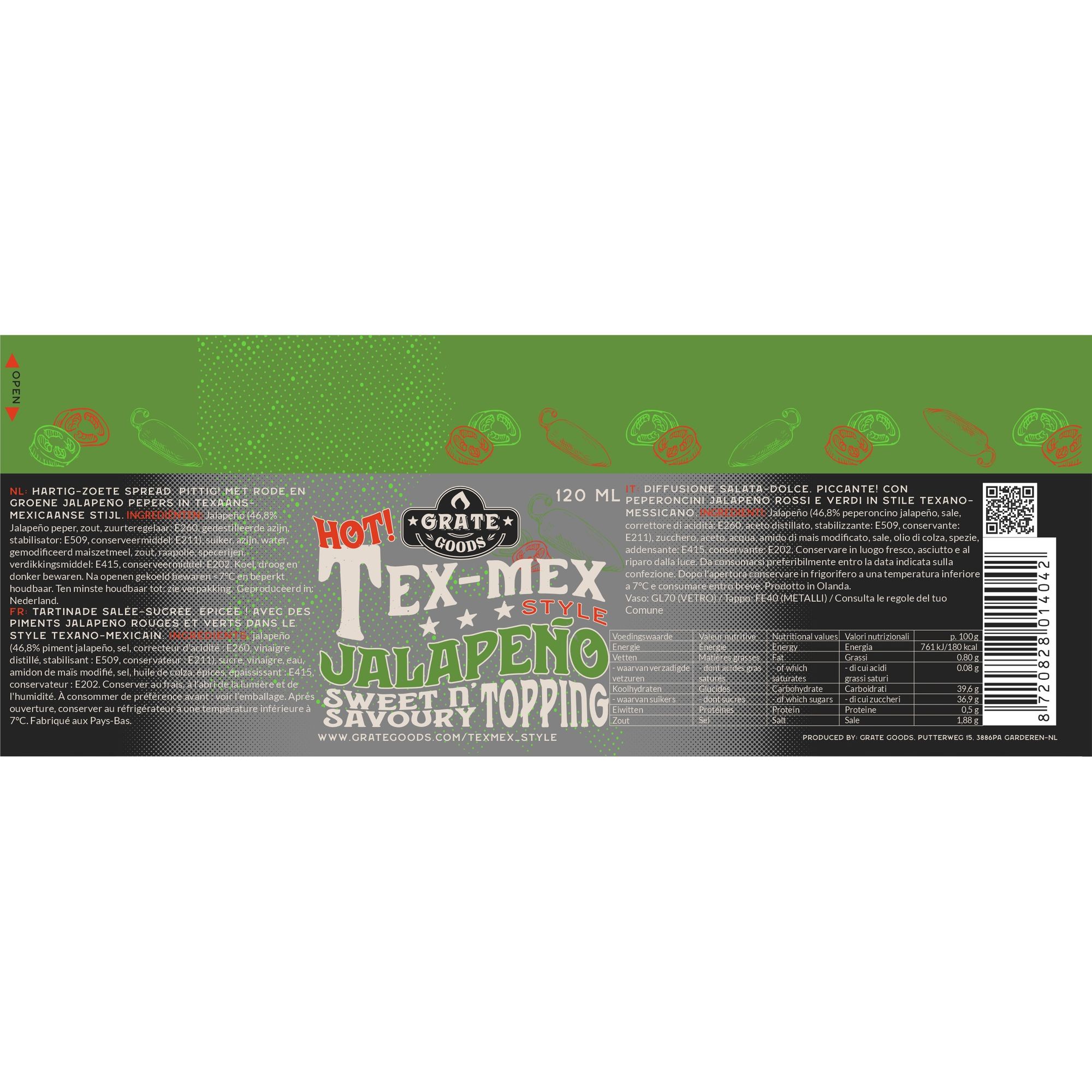 Crema piccante dallo stile messicano, creata con i Jalapenos rossi e verdi, chili e con i peperoni chipotle affumicati.Può essere utilizzata in diversi modi: – con il pane o con i toast- con piatti cotti nel barbecue – con la carne o con il formaggio- nei sandwich e negli hamburger- con i salumi- con i tacos o i nachos